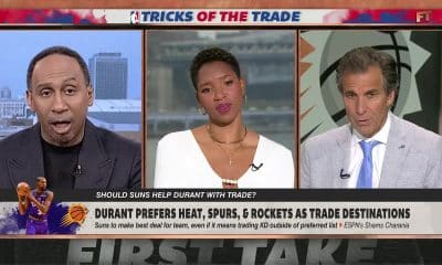 Stephen A. Smith, Chris “Mad Dog” Russo and Monica McNutt join Molly Qerim on First Take to discuss Kevin Durant’s request to be traded from the...