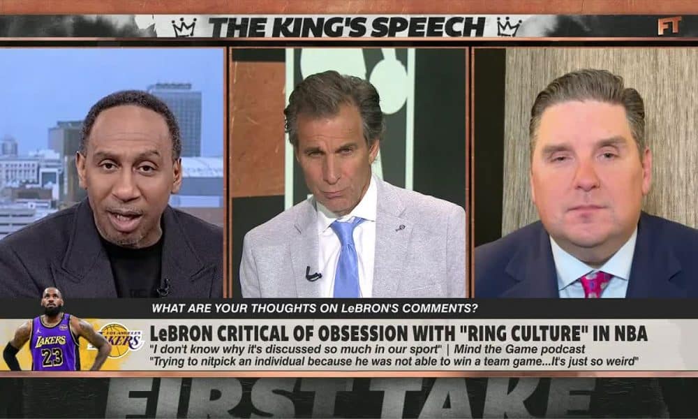 Stephen A. Smith, Chris “Mad Dog” Russo and Brian Windhorst join Molly Qerim on First Take to react to LeBron James’ comments on NBA “ring culture”...