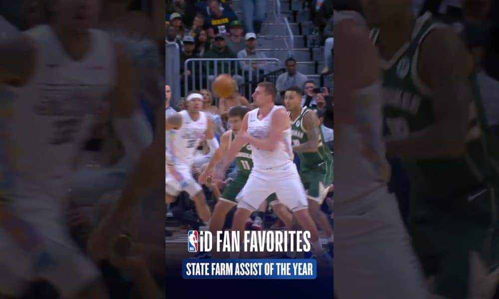 Nikola Jokić wins the 2025 NBA Fan Favorites Award for his no-look, over-the-shoulder pass as voted by YOU, the fans!
