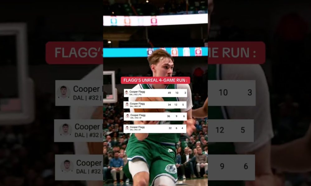 Cooper Flagg continues an unreal four-game run that’s rewriting the NBA record books. The Mavericks rookie is the youngest player in NBA history to score 30+...