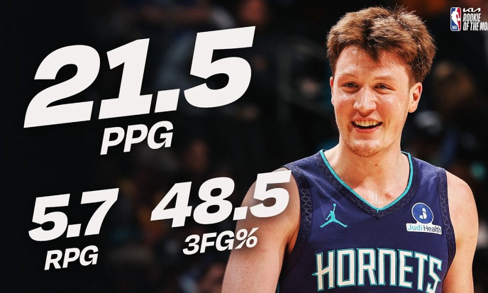 Charlotte Hornets guard-forward Kon Knueppel and San Antonio Spurs guard Dylan Harper have been named the Kia NBA Western and Eastern Conference Rookies of the Month,...