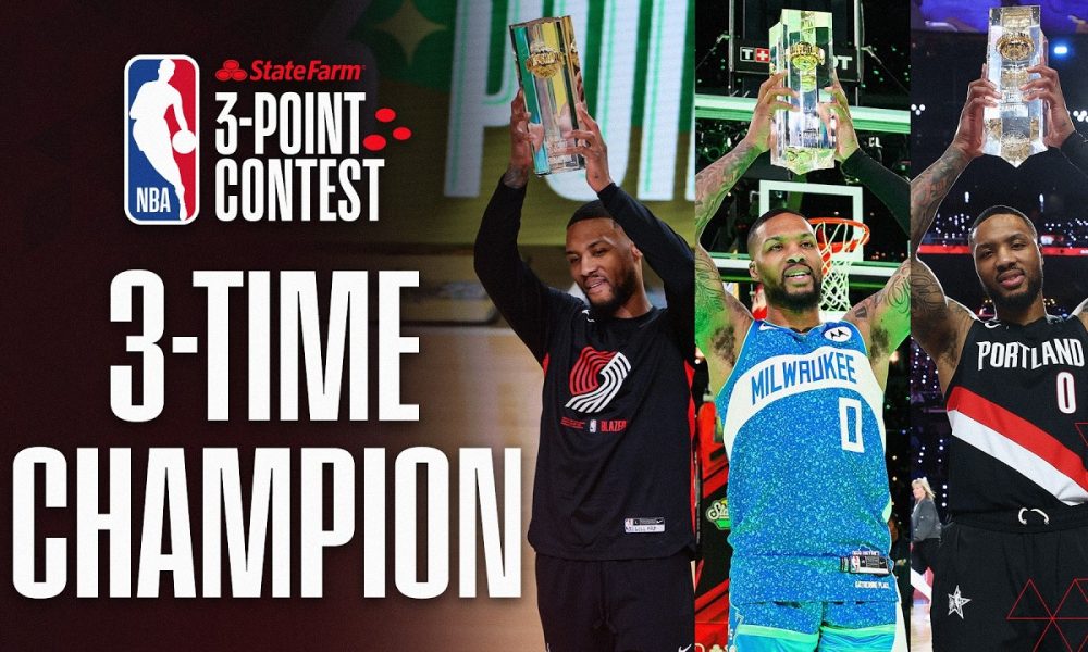 Damian Lillard wins his third State Farm 3-Point Contest at NBA All-Star Saturday Night, scoring 29 points in the final round to edge Devin Booker (27)...