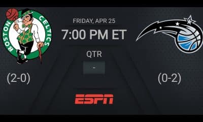 Tune into ESPN for today’s #NBAPlayoffs presented by Google Live Scoreboard 7:00 PM ET: Celtics/Magic 9:30 PM ET: Lakers/Timberwolves